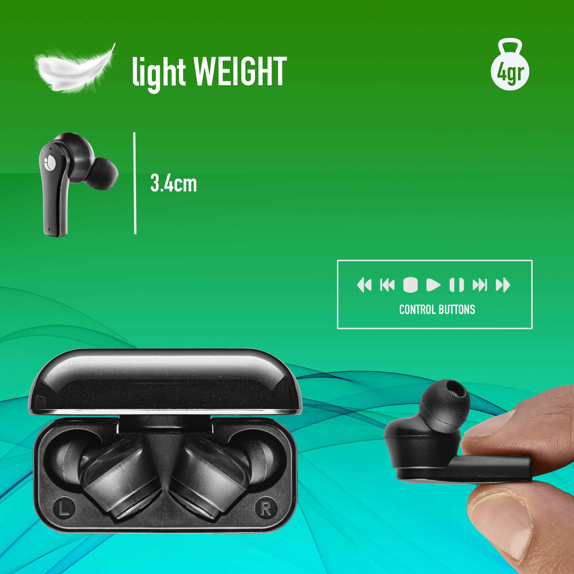 NGS Artica Bloom, Wireless BT Earphones, Black |