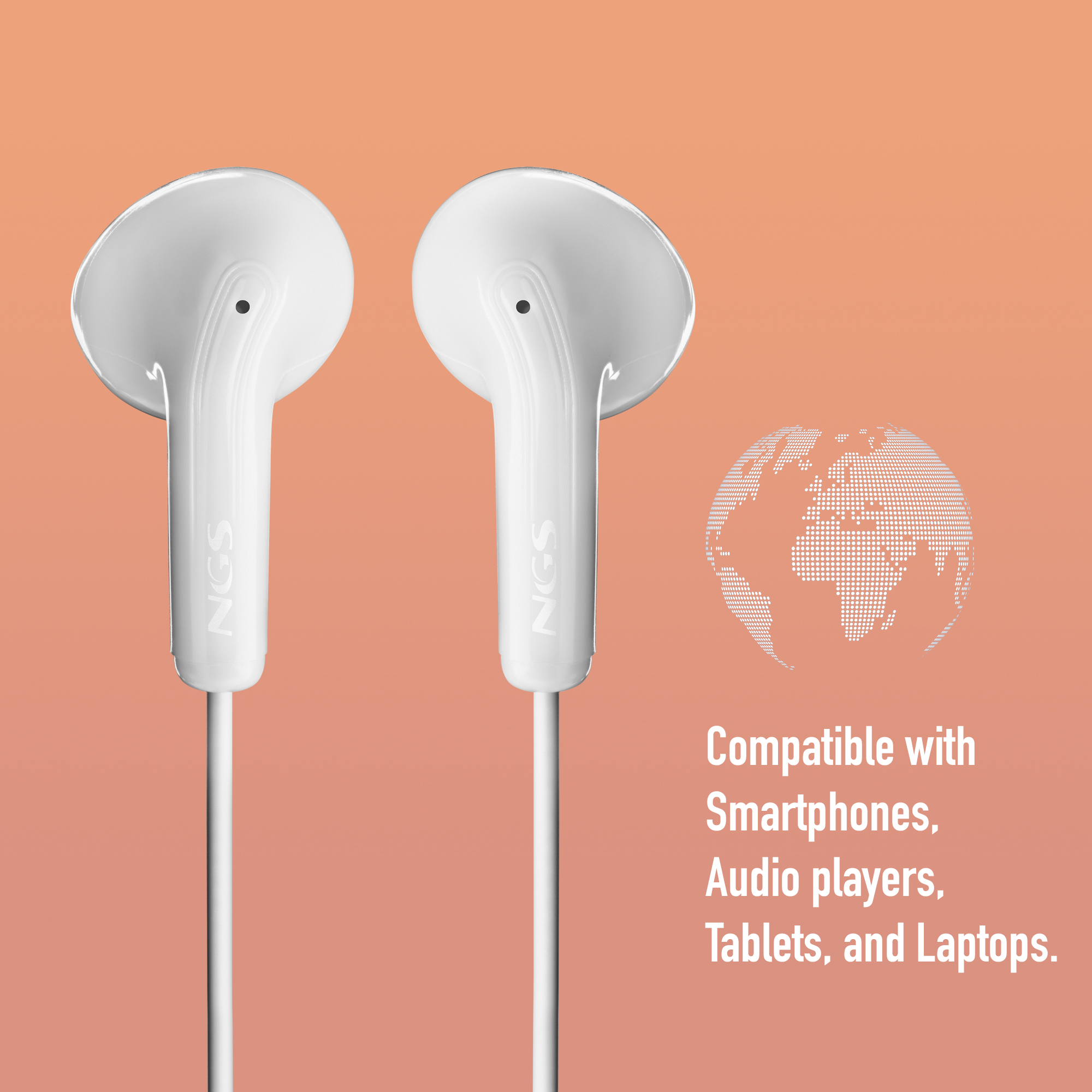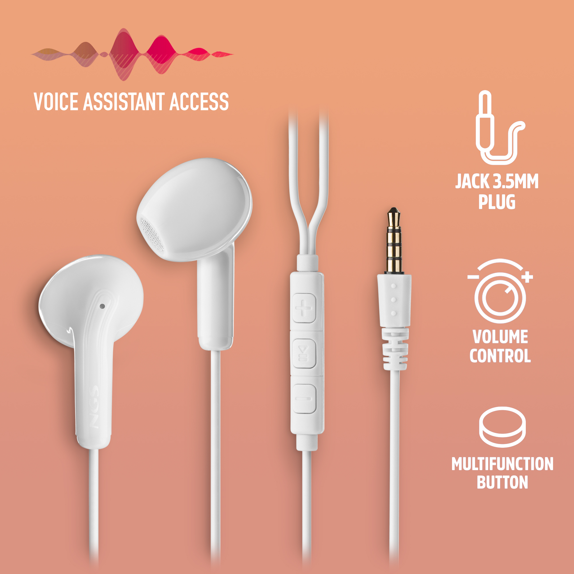 NGS Cross Flip, In-Ear Wired Headphones with 3.5mm Jack, Microphone and Control Buttons, White |